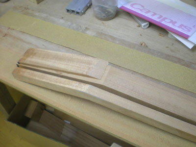 迷いが多くて進みませんのでネックの加工をします まずは余分をおおまかにカット