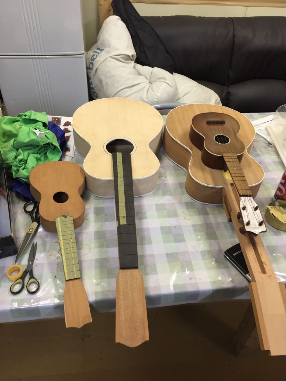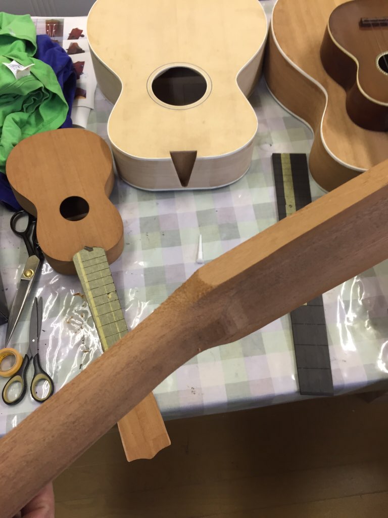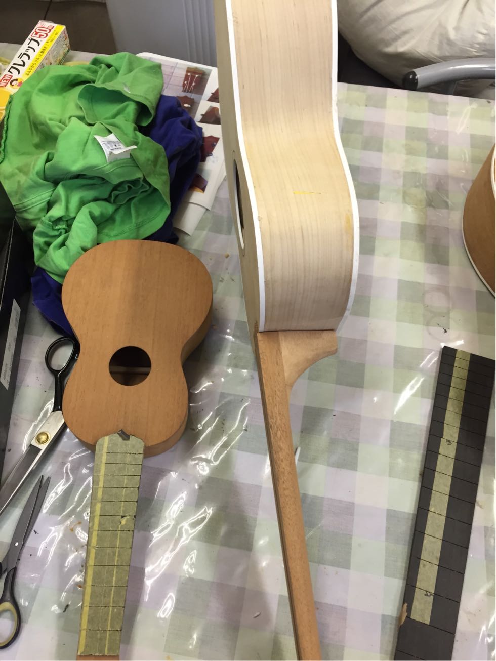 そもそもギターの制作はまだ初心者故に人のギターは作らないと宣言している。でも制作をしていると私にも一本作ってなんて話は結構ある。しかし今回はいろいろいきさつもありギターは作らないと宣言しているがウクレレなら良いだろう、、、なわけないがまあ作ることになったわけで、本人も制作にとても興味もあることだし出来るところは手伝ってもらおう、しかネックは好みもあるしね。