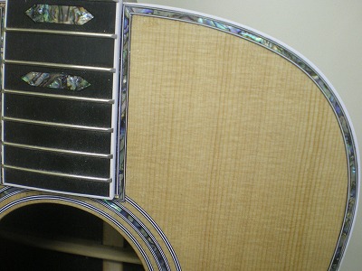 S92と言うのは南澤氏がフィンガースタイルで演奏するためにオーダーしたS131の半手工モデルとのこと、氏の言葉を借りれば外見も音も見分けがつかないぐらいだそうだ。トップはシダー、サイドバック、ネックはマホガニー。ネックは若干太めのナット部分で44ミリ、弦が全体的にバス方向へオフセットしているのが特徴!