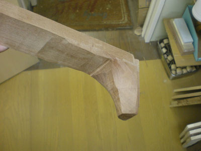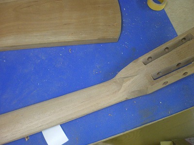 ネックの加工を進めます。どんどん削ります、マホガニーは加工しやすい材だと思いますがやすりでこれだけ削るのは結構骨が折れます