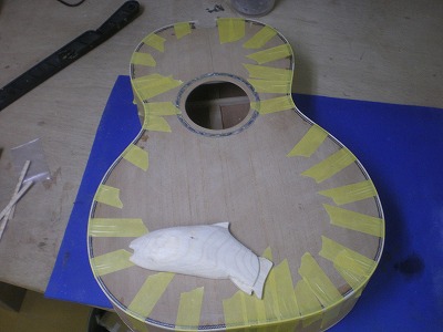 ボディーに乗っかっているのは、暇な時につくりかけたフィッシュカービング、ちょっと引いてみると分かりますね