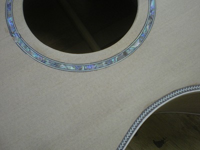 今回もヘリンボーンのパーフリングにカーリーメイプルのバインディングです