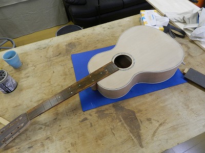 そろそろネックの接合をするとゴールが見えてきます。どんな音がするのか楽しみですね~。