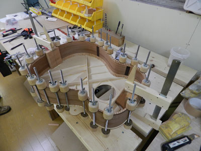 で、出来上がりはこんなかんじです。表はセル、裏はカーリーコア、パフリングはヘリンボーン、結構気に入ってます。
