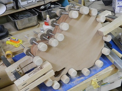 ネックの作業に取り掛かりたいところですがクランプを使ってしまっているので今日はここまで。