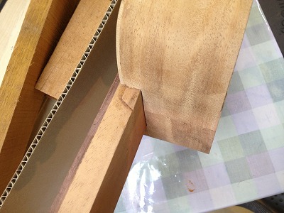 ライニングを貼った側板のトップのつくところを均して接着です。